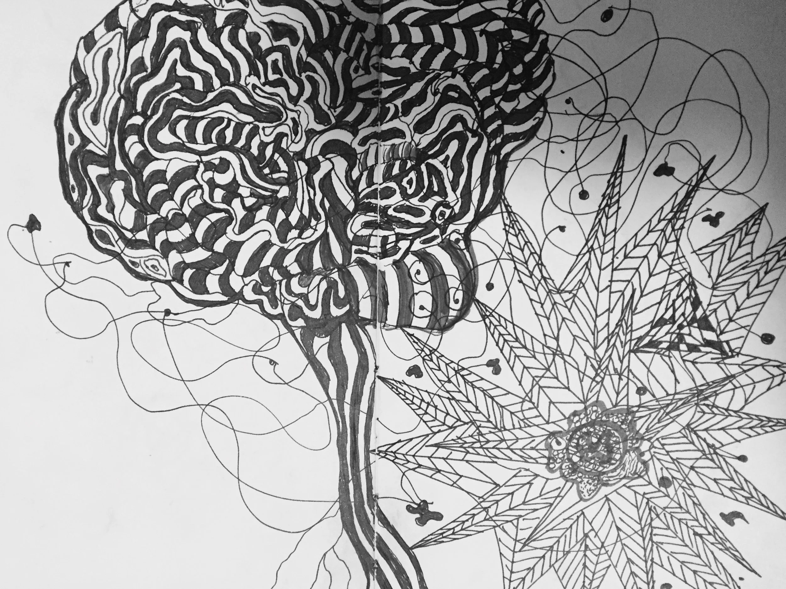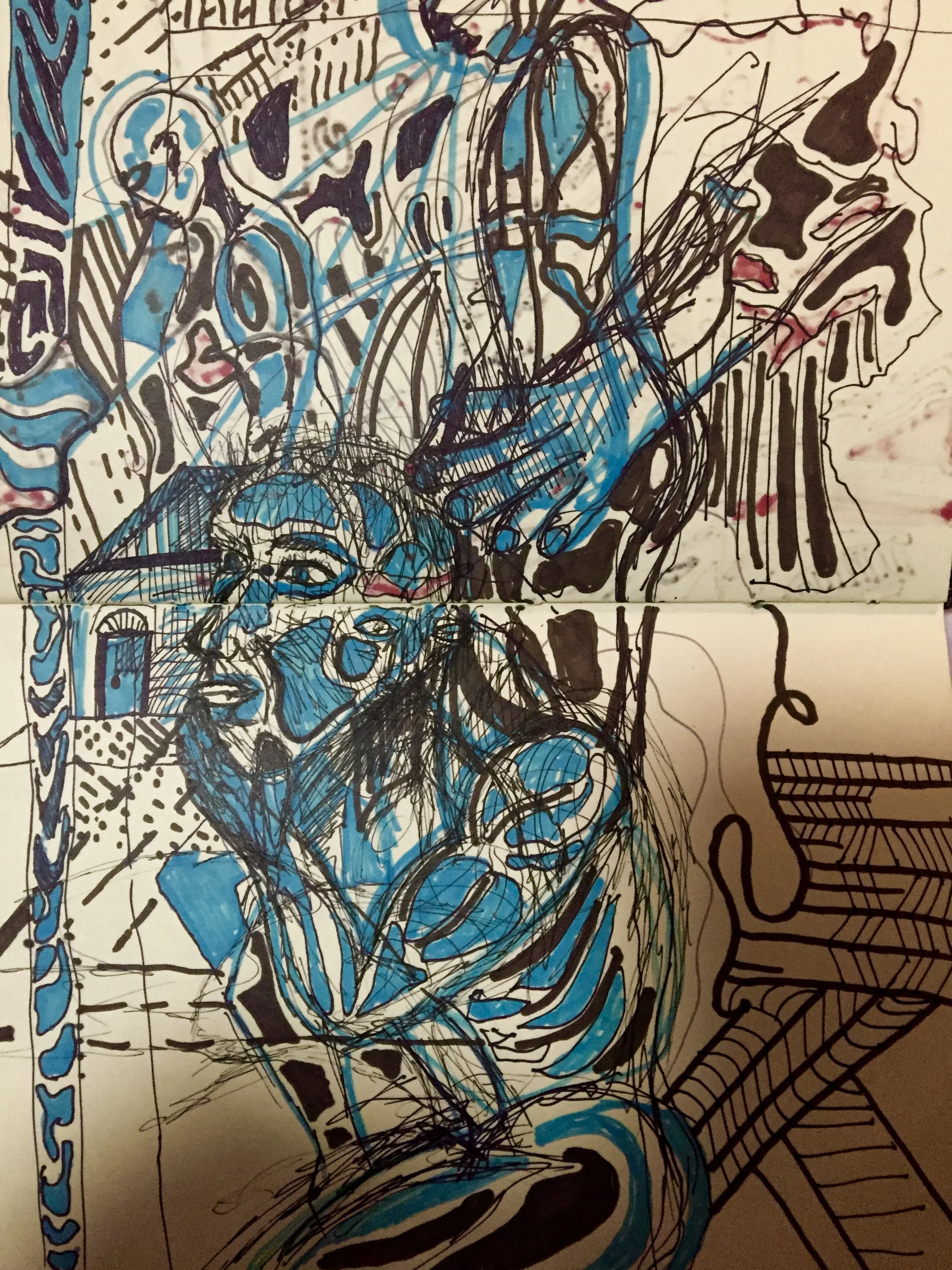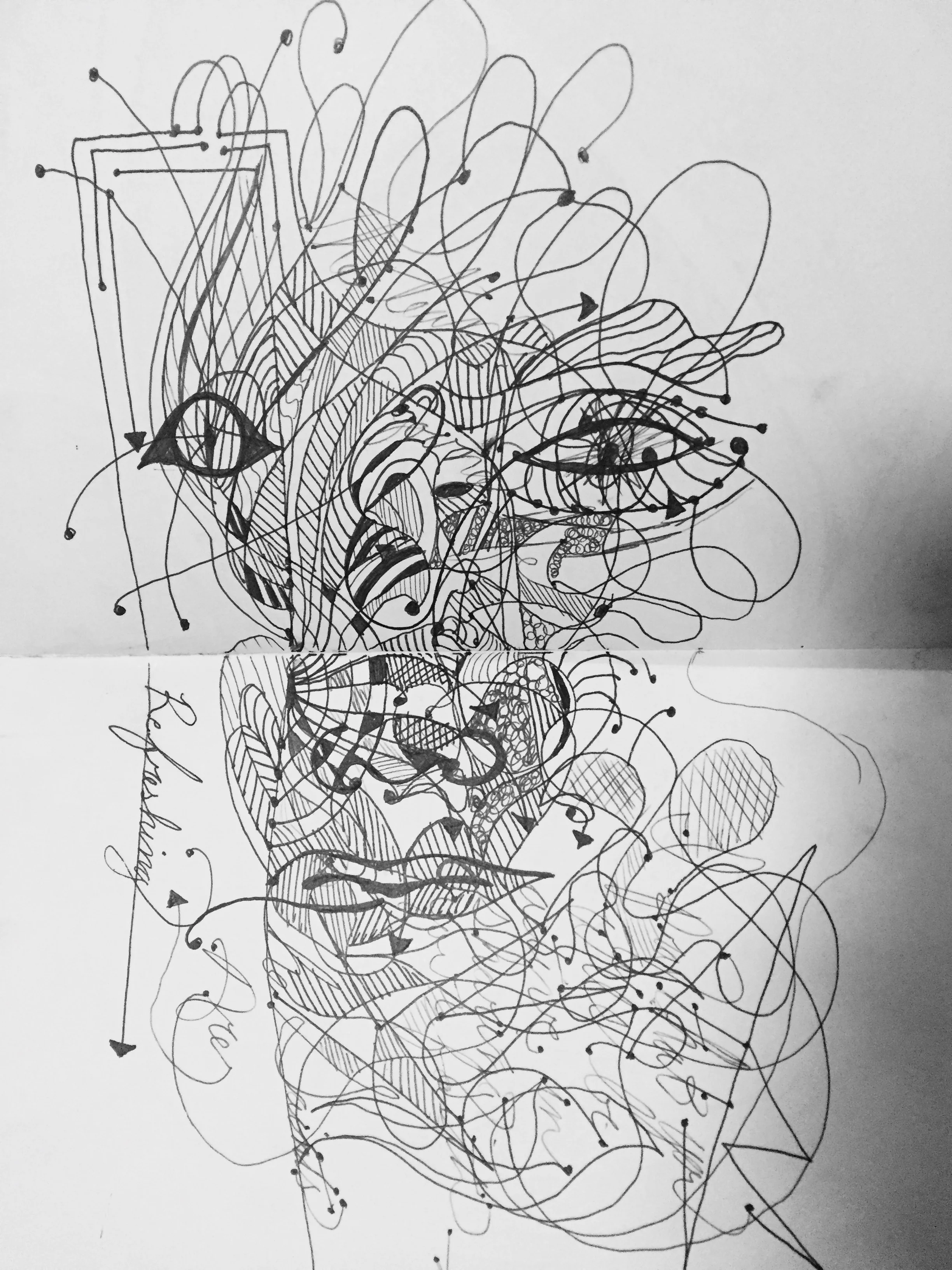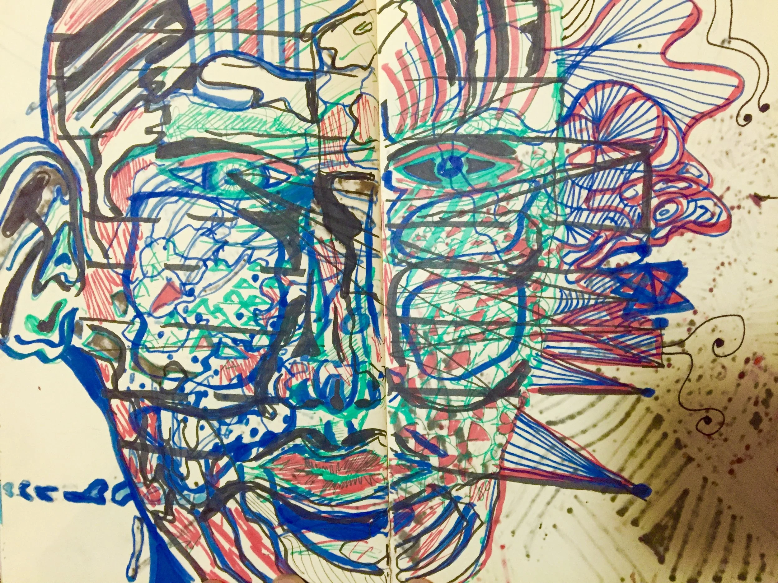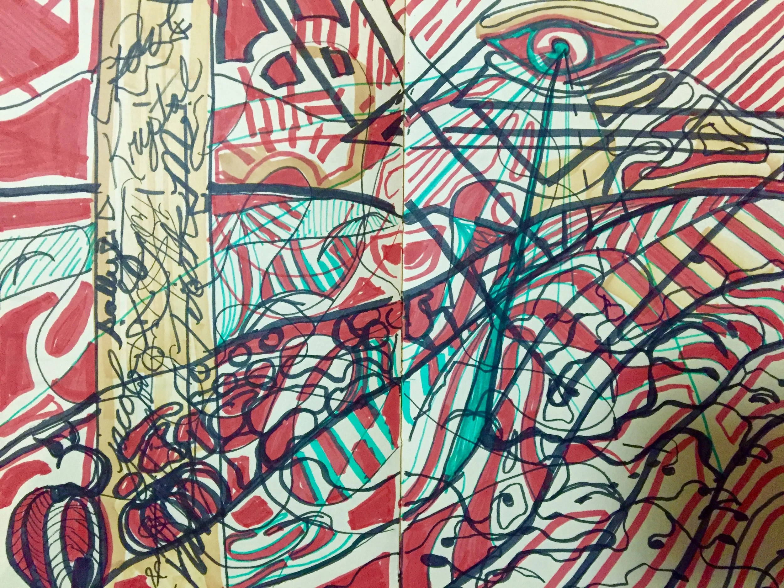 The outcome of this work is highly processual and cathartic, yet depicting clarity of structure through the repetition of layers, lines, and coalescing pieces of imagery; the black inky outlines revealing a Rorschach-ish psychoanalytical tête-à-tête interlaced with nuances of Freud’s human psycho-sexual theories. In addition, the intentionality of obscurity and/or disillusionment within each piece, alludes to Brittan’s obsession with semantics and the personal values and meanings any one viewer may project onto the work creating layers, upon layers of collective meaning and value.