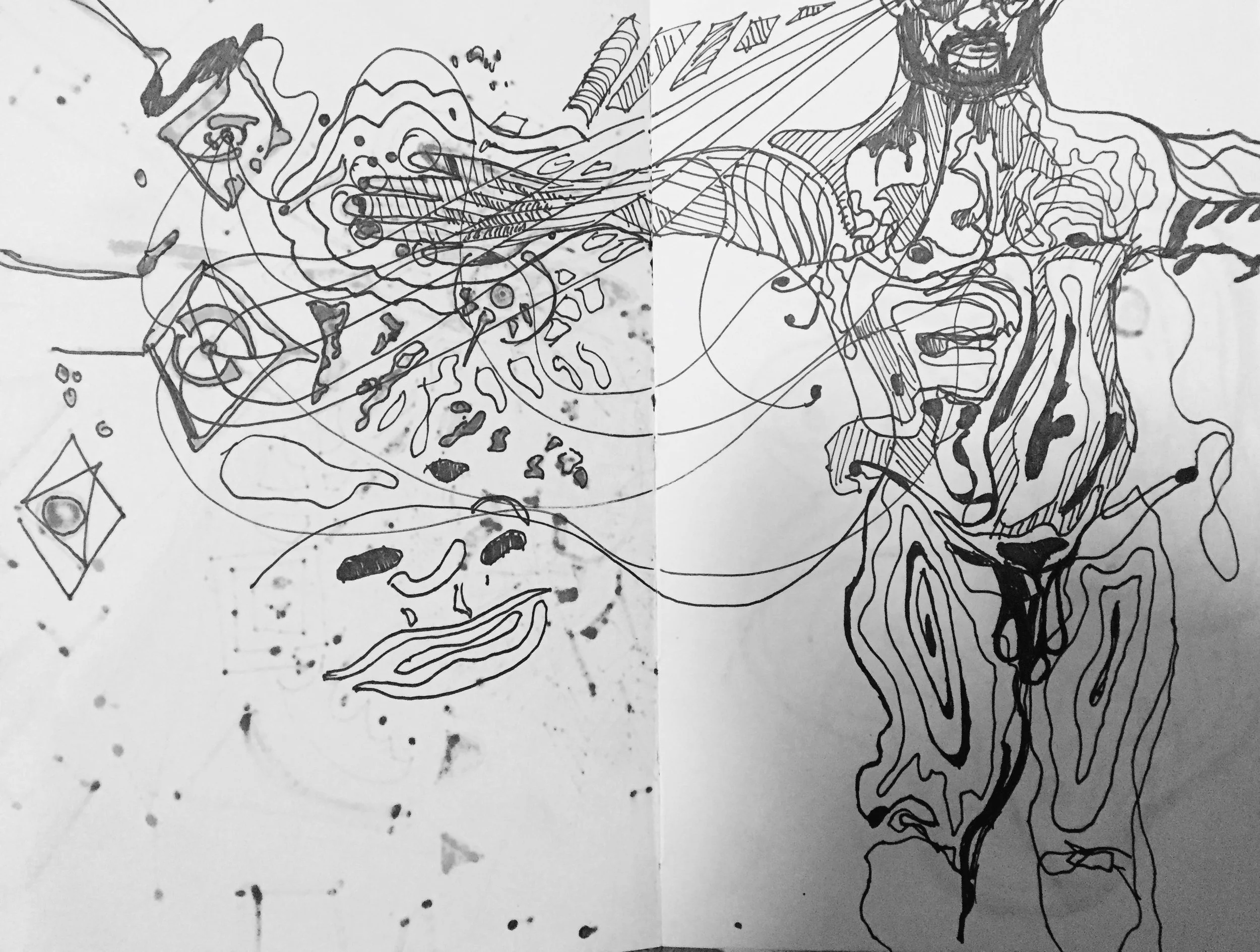 I am gearing up for new work and after randomly looking at my book shelf and remembered I had a few sketchbooks from the past. I realized that I have come a long way from these sketches, whether in a good or bad direction, I am not sure. Needless to say, I want to publish the old so that I have a bench mark for the new. These sketches were made between 2009 and 2011 in black Molskin sketchbooks with colored ink pens.