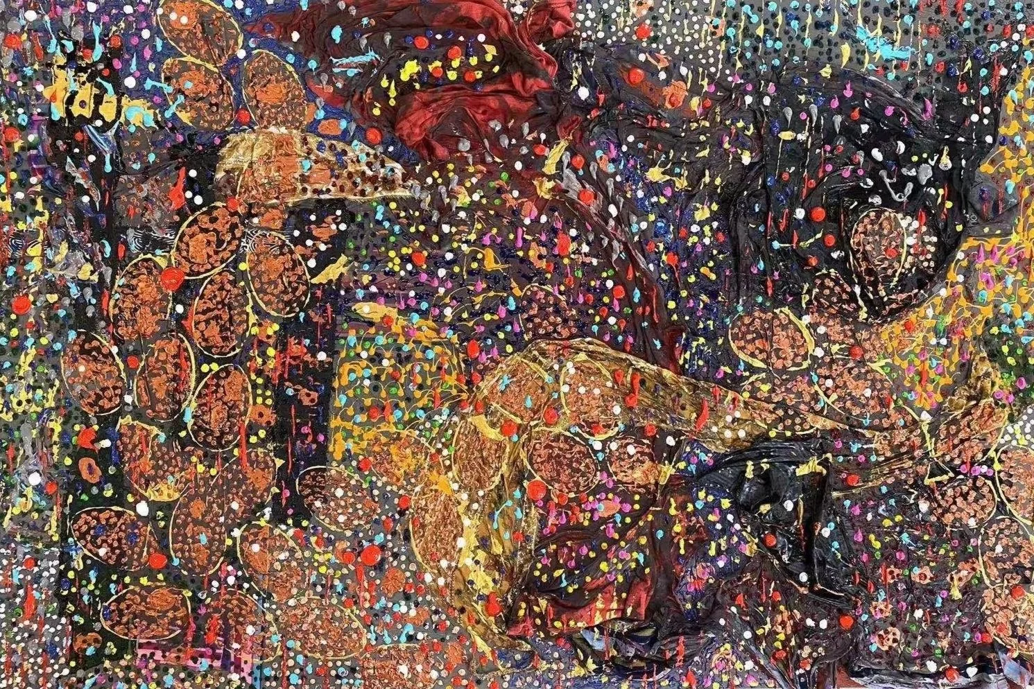 “Fabrique-Domesticis: Flora 1” - 2021 - 90 H x 175 W x 3 D (CM) - Mixed media on canvas